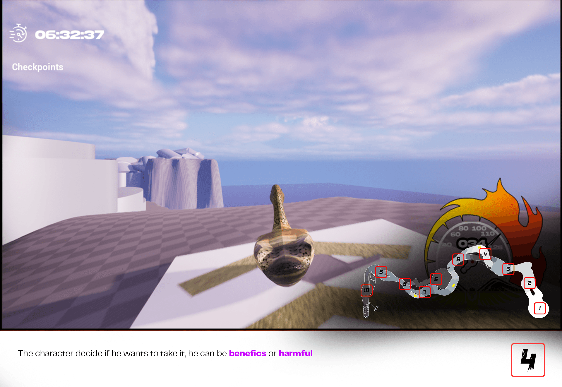 The objective of each level is to leave players decide if they wants to fly, swim, or run and redo the race to improve their time.
